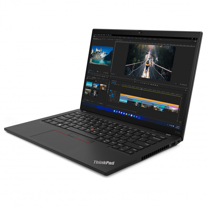 "Lenovo ThinkPad P14s Gen 4 (Intel). Product type: Mobile workstation, Form factor: Clamshell. Processor family: Intel® Core™ i5, Processor model: i5-1340P. Display diagonal: 35.6 cm (14""), HD type: 2.8K, Display resolution: 2880 x 1800 pixels. Internal memory: 16 GB, Internal memory type: DDR5-SDRAM. Total storage capacity: 512 GB, Storage media: SSD. On-board graphics card model: Intel Iris Xe Graphics. Operating system installed: Windows 11 Pro. Product colour: Black. Weight: 1.34 kg"\n"On-the-go performance