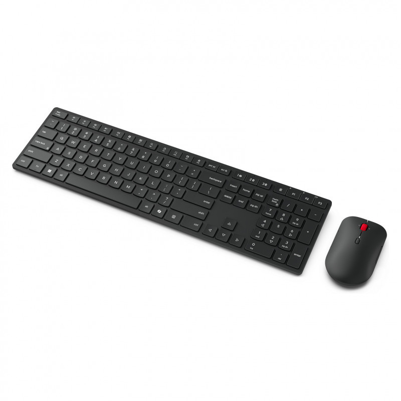 "Lenovo 4X31S04814. Keyboard form factor: Full-size (100%). Keyboard style: Straight. Connectivity technology: Wireless, Device interface: RF Wireless + Bluetooth, Recommended usage: Office. Product colour: Black. Mouse included"\n"Crafted for professionals, keyboard &mouse deliver unrivaled functionality, comfort, and style. The sleek, responsive keyboard ensures a silent typing experience, while the standard-sized, ambidextrous silent mouse offers ergonomic comfort and precise control. Seamlessly connect to up to 3 devices via Bluetooth 5.3 and 2.4GHz for rock-solid reliability—perfect for boosting productivity across all your devices.