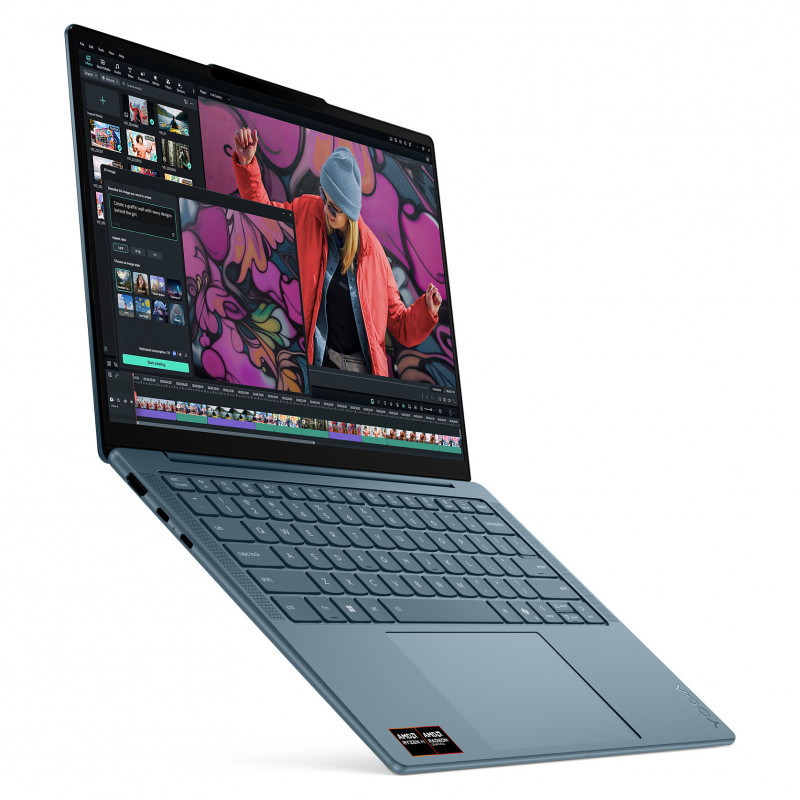 "Lenovo Yoga Slim 7 14AKP10 Copilot+ PC. Product type: Laptop, Form factor: Clamshell. Processor family: AMD Ryzen™ AI 7, Processor model: 350, Processor frequency: 2 GHz. Display diagonal: 35.6 cm (14""), HD type: 2.8K, Display resolution: 2880 x 1800 pixels. Internal memory: 16 GB, Internal memory type: LPDDR5-SDRAM. Total storage capacity: 512 GB, Storage media: SSD. On-board graphics card model: AMD Radeon 860M. Operating system installed: Windows 11 Home. Product colour: Teal"\n