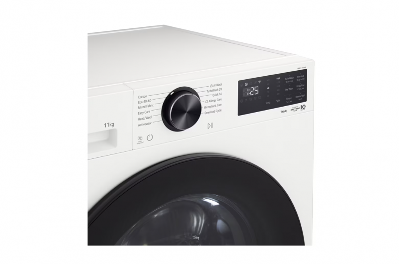 LG Washing machine | F4X5011TWB | Energy efficiency class A | Front loading | Washing capacity 11 kg | 1400 RPM | Depth 57 cm | Width 60 cm | Display | LED | Steam function | Direct drive | Wi-Fi | White