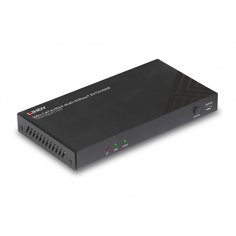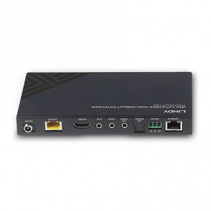 "Lindy 100m Cat.6 HDMI 4K60, Audio, IR and RS-232 HDBaseT Transmitter. Type: AV transmitter, Maximum resolution: 3840 x 2160 pixels, Cable types supported: Cat6. Connectivity technology: Wired, Digital audio optical output type: TOSLINK. Width: 163 mm, Depth: 90 mm, Height: 16 mm. Quantity per pack: 1 pc(s), Package width: 220 mm, Package depth: 70 mm"\n"The Lindy 100m Cat.6 HDMI 4K60, Audio, IR and RS-232 HDBaseT Transmitter is one part of a high performance, reliable solution for extending HDMI signals over long distances via Cat.6 network cable. By combining this transmitter unit with a compatible Lindy HDBaseT receiver (i.e 38342), this solution ensures reliable transmission up to 100m.