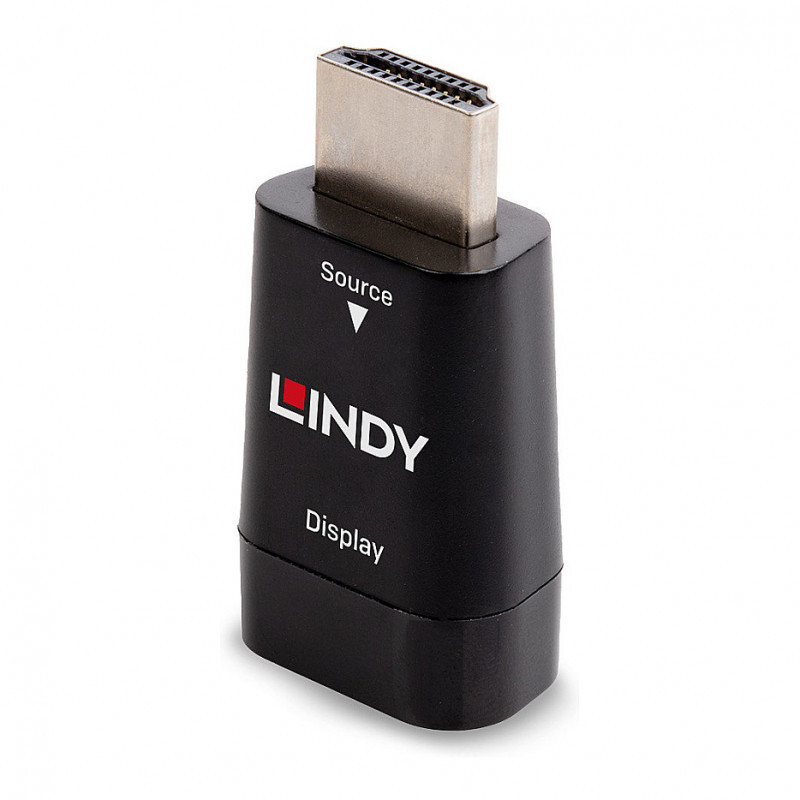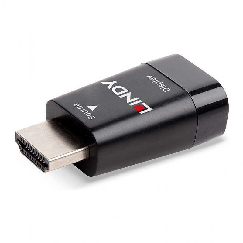 "Lindy HDMI 1.3 to VGA Converter. Connector 1: HDMI Type A (Standard), Connector 2: VGA, Cable length: 0 m. Product colour: Black"\n"The Lindy HDMI to VGA converter converts signals from a HDMI equipped source into a VGA signal. It supports resolutions up to 1920x1200@60Hz for VGA displays.This allows the connection of HDMI capable devices, such as PC's, notebooks and ultrabooks, to an older VGA display or projector.