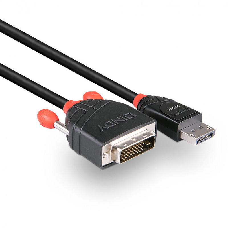 "Lindy 3m DisplayPort to DVI Cable. Cable length: 3 m, Connector 1: DVI-D, Connector 2: DisplayPort"\n"The Lindy DisplayPort to DVI Cable is ideal for connecting a DisplayPort equipped source such as a PC or laptop to an DVI display. It supports high definition video resolutions up to 1920x1200@60Hz.
