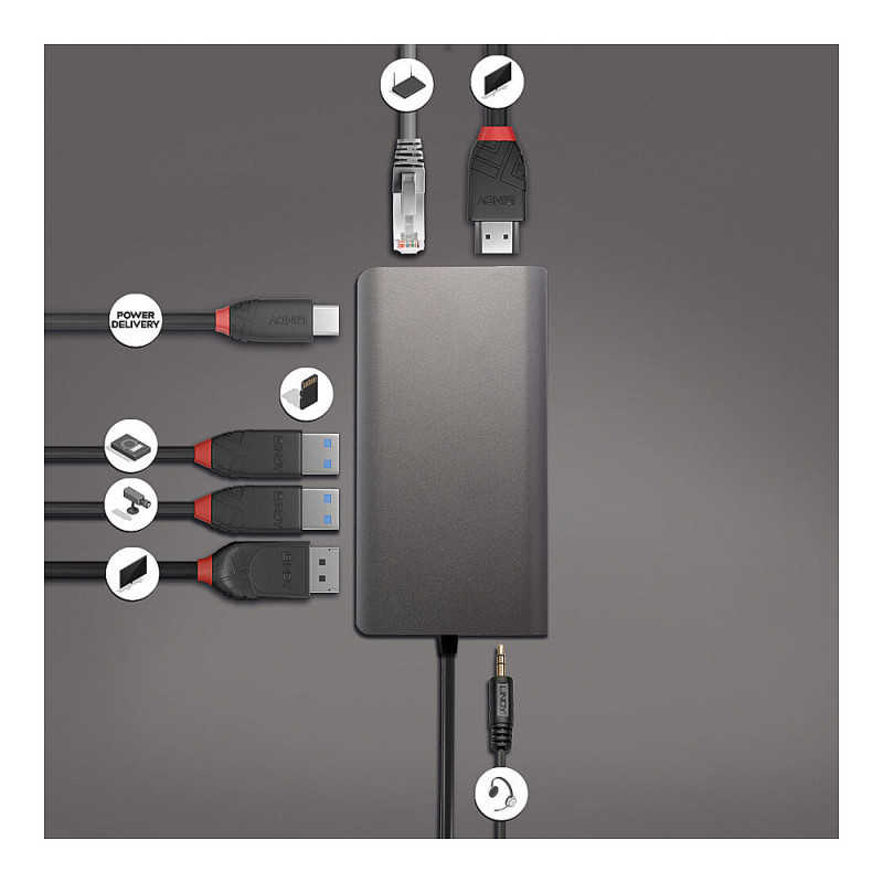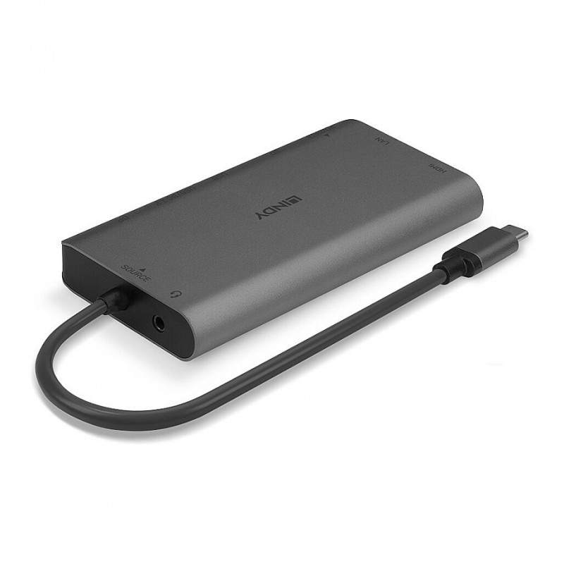 "Lindy DST-Mini XT, USB-C Laptop Mini Docking Station with Single Display (4K) or Dual Display (Full HD) and 100W Pass-Through Charging. Connectivity technology: Wired, Host interface: USB 3.2 Gen 1 (3.1 Gen 1) Type-C, USB Power Delivery up to: 100 W. Ethernet LAN data rates: 1000 Mbit/s. Product colour: Black, Grey, Compatible memory cards: SD, Data transfer rate: 5 Gbit/s. Power source type: USB. Width: 116.5 mm, Depth: 61 mm, Height: 16 mm"\n"The DST-Mini XT is Lindy's feature-packed mini docking station. Housed in robust aluminium, this compact dock has been designed for those who need greater additional connectivity, in a portable form factor.