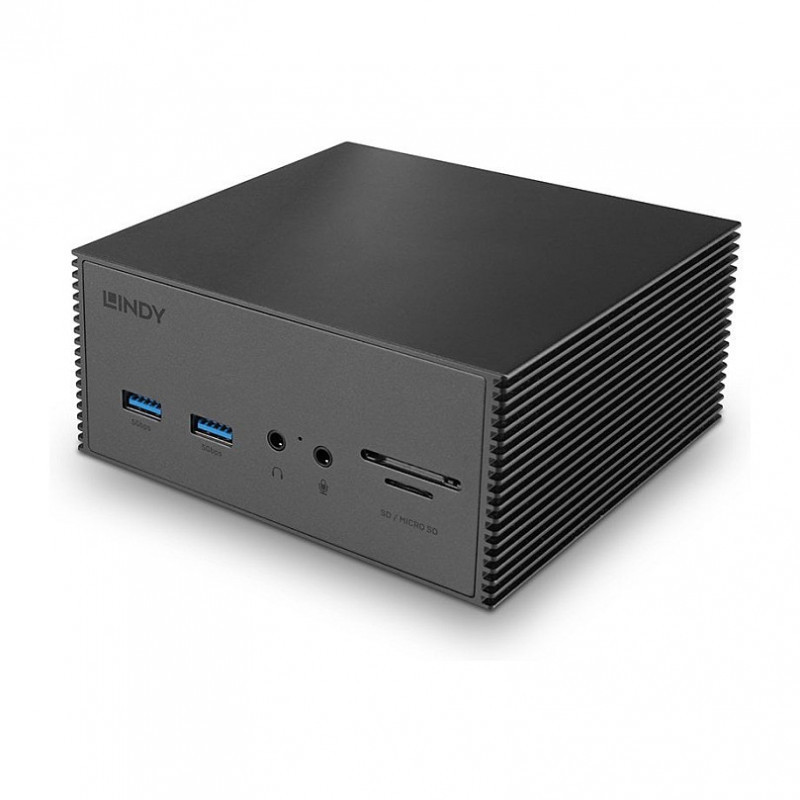 "Lindy DST-Pro 101, USB-C Laptop Docking Station with 4K Support and 100W Power Supply. Connectivity technology: Wired, Host interface: USB 3.2 Gen 2 (3.1 Gen 2) Type-C. Ethernet LAN data rates: 10,100 Mbit/s. Product colour: Grey, Compatible memory cards: MicroSD (TransFlash), SD, Data transfer rate: 5 Gbit/s. Power source type: DC, Power consumption (typical): 25 W. Width: 122 mm, Depth: 122 mm, Height: 55 mm"\n"The DST-Pro 101 was designed with pros in mind, this product allows for easy, fast, and reliable charging of your device, ensuring you can perform power-hungry tasks with ease. Housed in a robust aluminium body, this dock has been constructed to provide elite performance.