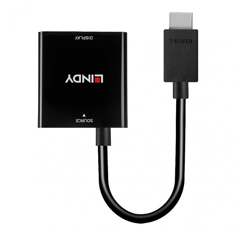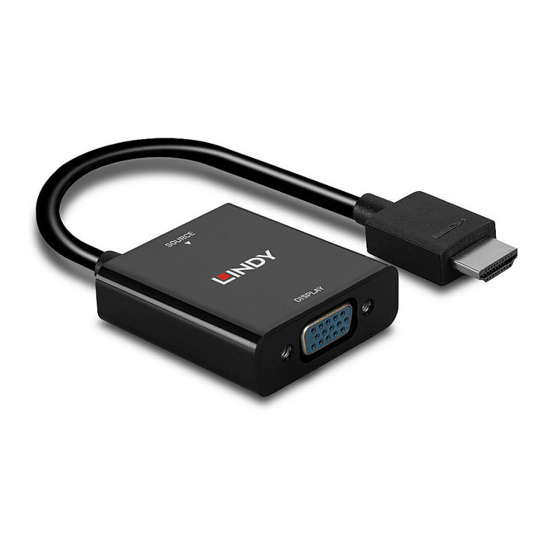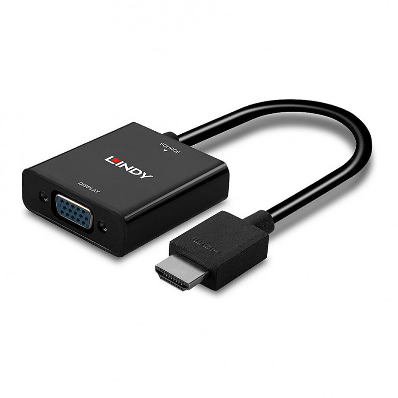 "Lindy HDMI to VGA Converter. Cable length: 0.1 m, Connector 1: HDMI Type A (Standard), Connector 2: VGA (D-Sub). Certification: CE, UKCA, FCC, RoHS, REACH. Cable diameter: 4.8 mm, Connector 1 dimensions (WxDxH): 37 x 42 x 14.5 mm, Connector 2 dimensions (WxDxH): 21 x 17.4 x 9.6 mm. Package width: 160 mm, Package depth: 20 mm, Package height: 160 mm. Quantity per pack: 1 pc(s)"\n"The Lindy HDMI 1.3 to VGA converter converts signals from an HDMI equipped source into an analogue VGA signal. It supports resolutions up to 1080p and 1920x1200 for PC VGA displays. This allows the connection of modern HDMI capable devices, such as PC's, notebooks and ultrabooks, to an older VGA display or projector.