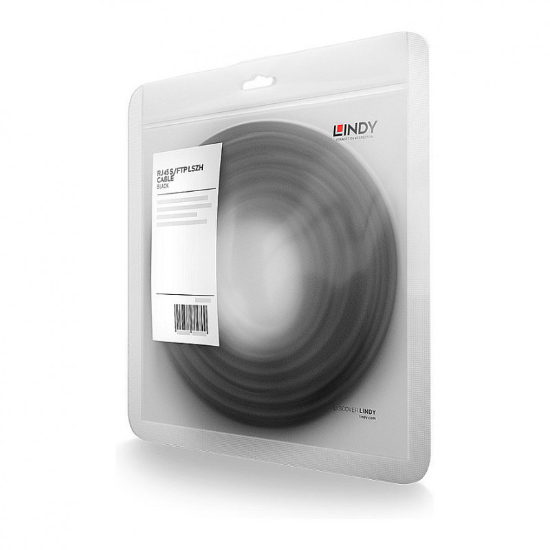 "Lindy 47308. Cable length: 1.5 m, Cable standard: Cat7, Cable shielding: S/FTP (S-STP), Connector 1: RJ-45, Connector 2: RJ-45, Connector contacts plating: Nickel/Gold, Product colour: Black"\n"Cat.7 S/FTP LSZH network cable with Cat.6A connectors supports bandwidth up to 600MHz and features a snagless design with gold plated contacts for ethernet standards up to 10 GBase-T.