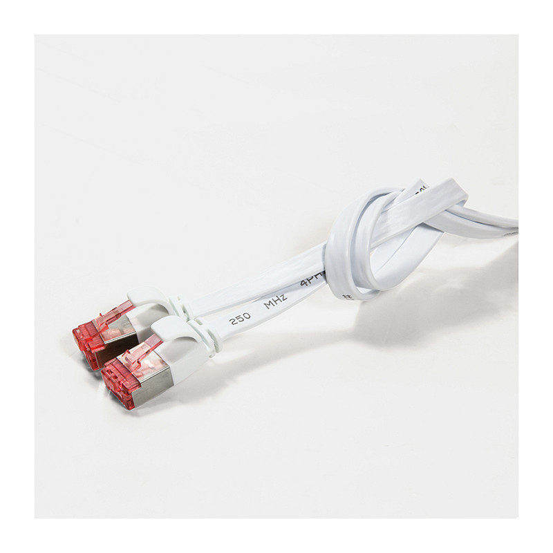 "LogiLink CF2021S. Cable length: 0.5 m, Cable standard: Cat6, Cable shielding: U/FTP (STP), Connector 1: RJ-45, Connector 2: RJ-45, Connector contacts plating: Gold, Product colour: White"\n"Patch cable SlimLine, flat, Cat.6A, U/FTP, white, 0.5 m"" from LogiLink Professional