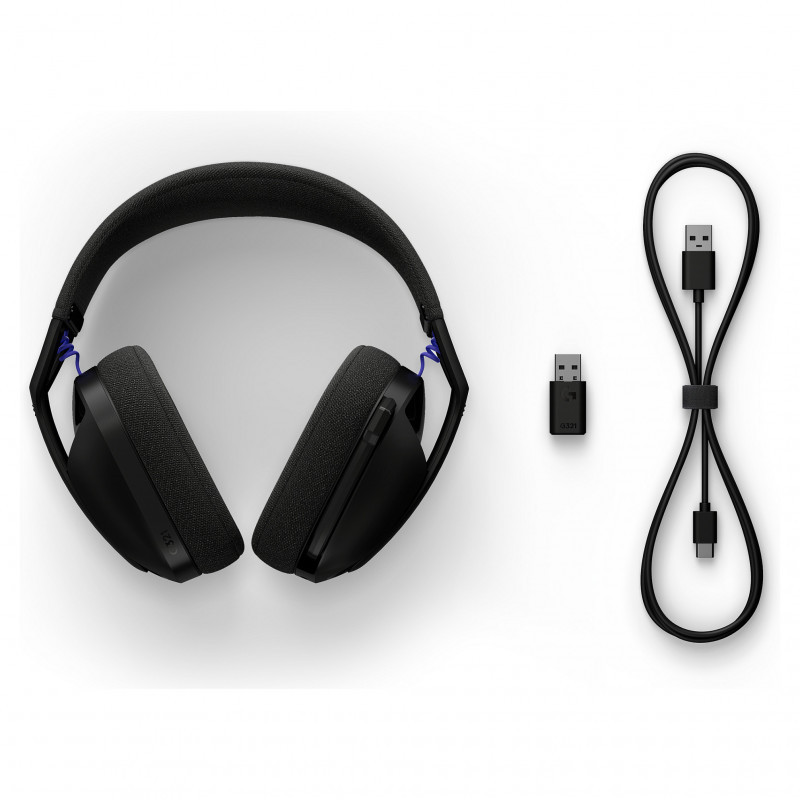 "Logitech G G321 LIGHTSPEED. Product type: Headset. Connectivity technology: Wireless, Bluetooth. Recommended usage: Gaming. Headphone frequency: 20 - 20000 Hz. Wireless range: 10 m. Weight: 210 g. Product colour: Black"\n"Designed for comfort and performance—right out of the box. G321 LIGHTSPEED features lightweight comfort at 210 g, a 16 kHz flip-to-mute mic, and LIGHTSPEED Wireless and Bluetooth® connectivity with 20+ hours of battery life.
