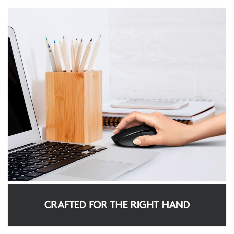 "Logitech M330 SILENT PLUS. Form factor: Right-hand. Movement detection technology: Optical, Device interface: RF Wireless, Movement resolution: 1000 DPI, Buttons type: Pressed buttons, Buttons quantity: 3, Scroll type: Wheel. Power source: Batteries. Product colour: Blue"\n"With the same click feel and over 90% noise reduction* compared to classic mice, M330 SILENT PLUS offers a quiet experience for yourself and those around you. It has a long-lasting 24-month battery life with auto-sleep and a powerful 10-meter wireless range**. Plus, it’s designed with contoured grips made of soft rubber for total comfort. Just plug the tiny USB receiver and it works with Windows®, Mac, ChromeOS™ or Linux®. Finally, the Logitech® Advanced Optical Tracking guarantees smooth and precise moves on almost any surface.
