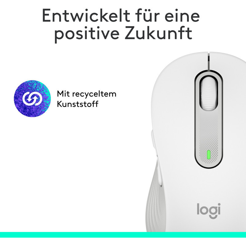 "Logitech Signature M650 Wireless Mouse. Form factor: Right-hand. Movement detection technology: Optical, Device interface: Bluetooth, Movement resolution: 4000 DPI, Buttons type: Pressed buttons, Buttons quantity: 5, Scroll type: Wheel. Power source: Batteries. Product colour: White"\n