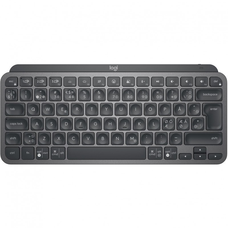 "Logitech MX Keys Mini For Business. Keyboard form factor: Mini. Keyboard style: Straight. Connectivity technology: Wireless, Device interface: RF Wireless + Bluetooth, Keyboard key switch: Scissor key switch, Keyboard layout: QWERTY, Keyboard number of keys: 79. Backlight type: LED. Recommended usage: Office. Product colour: Graphite"\n"MX Keys Mini for Business