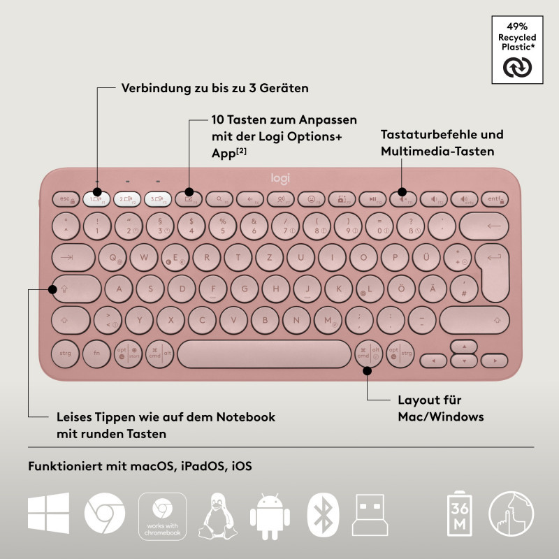 Logitech Pebble Mouse 2 M350s Mouse optical 3 buttons wireless Bluetooth 5.2 LE tonal rose