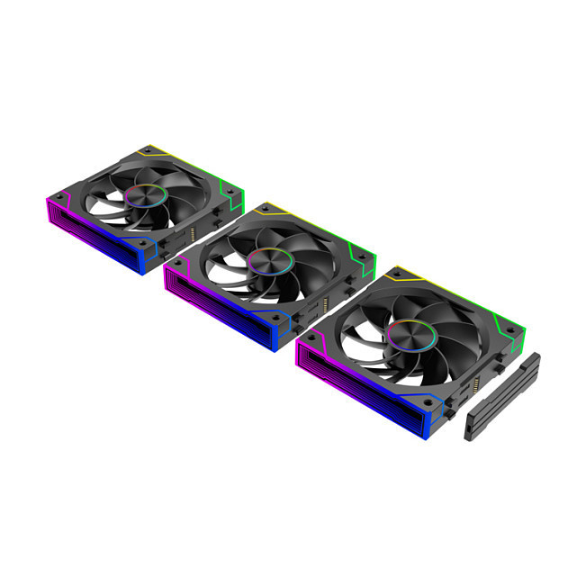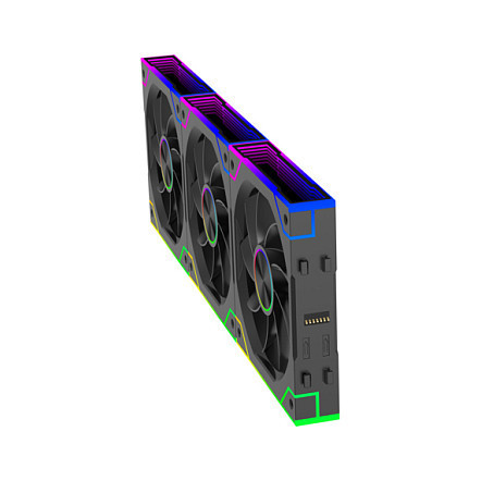 "Xilence Gaming Series XPF360R.ARGB. Type: Fan, Fan diameter: 12 cm, Maximum air pressure: 1.9 mmH2O, Bearing type: Hydraulic. Voltage: 7 - 13.2 V. Width: 360 mm, Depth: 125 mm, Height: 25 mm. Product colour: Black"\n"The XPF360R.ARGB is a triple pack of 120mm PWM REVERSE ARGB fans. The advanced daisy chain design allows for seamless fan-to-fan connection via a pin-to-pin locking mechanism, greatly simplifying installation and optimizing cable management for a tidy LED system.