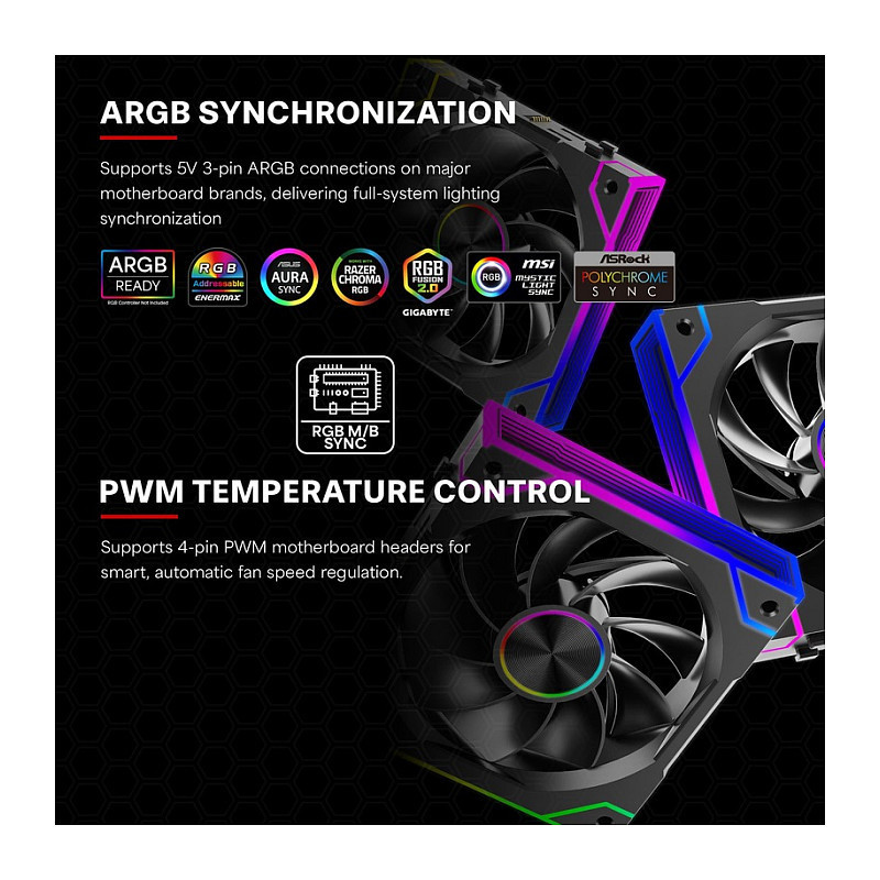 Supports 5V 3-pin ARGB connections on major motherboard brands for full-system lighting synchronization.