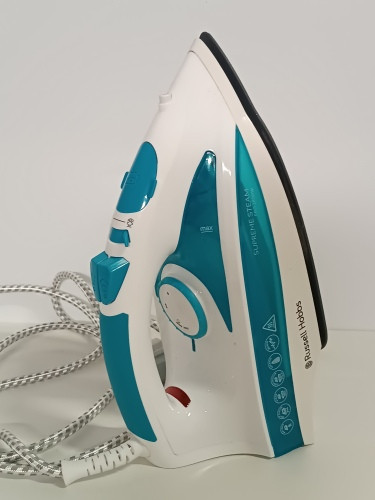 Ecost prekė po grąžinimo, Russell Hobbs garų lygintuvas Supreme Steam Pro (2600 vatų, 140 g/min papildomo garo pliūpsnis, keraminė pado plokštė, savaiminio valymo ir purškiamo vandens funkcija, lašėjimo sustabdymo funkcija, vertikalus garas), lygintuvas 20562-56