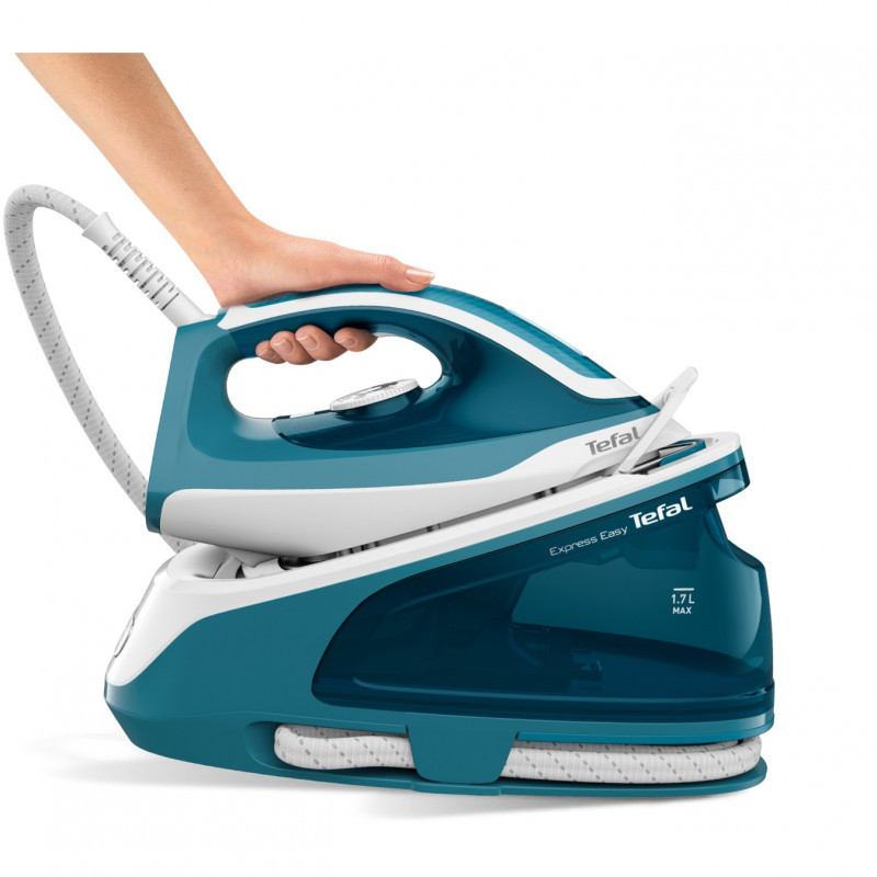 "Tefal Express Easy SV6131. Iron power: 2200 W, Steam boost performance: 230 g/min, Maximum steam pressure: 5.8 bar. Cord length: 1.6 m, Hose length: 1.6 m, Cable length: 1.6 m. Width: 179 mm, Height: 256 mm, Weight: 3.39 kg. Power: 2200 W, Country of origin: China. Package width: 212 mm, Package depth: 390 mm, Package height: 292 mm"\n