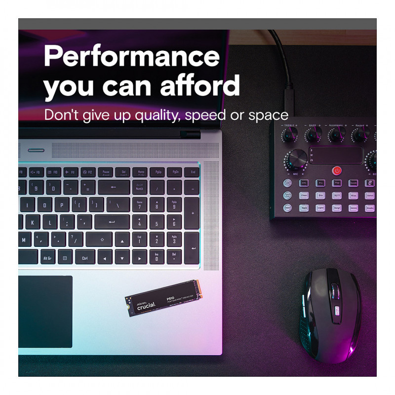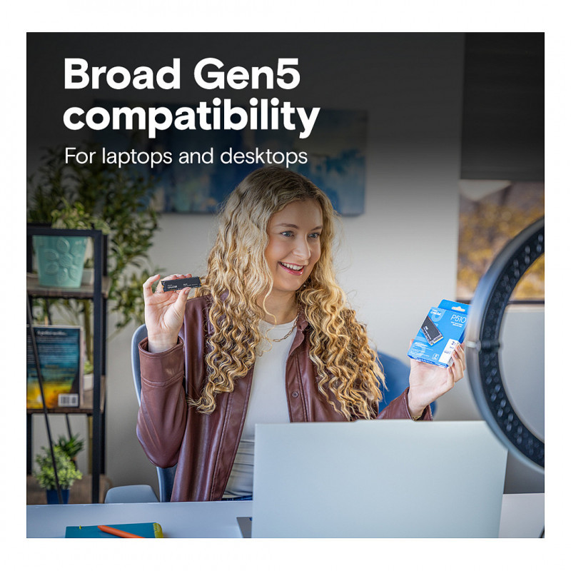 "Crucial P510. SSD capacity: 2 TB, SSD form factor: M.2, Read speed: 10000 MB/s, Write speed: 8700 MB/s, Component for: PC/Laptop"\n"Stay ahead of the curve with Gen5 storage
