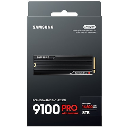 "Samsung 9100 PRO. SSD capacity: 8 TB, SSD form factor: M.2, Read speed: 14800 MB/s, Write speed: 13400 MB/s, Component for: PC/Laptop"\n"Breakthrough PCIe® 5.0 performance
