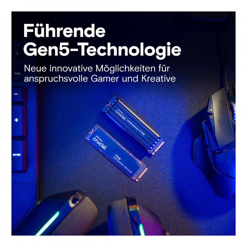 "Crucial T710. SSD capacity: 4 TB, SSD form factor: M.2, Component for: PC"\n"Uncompromising Gen5 performance for pro-level gamers and creators.