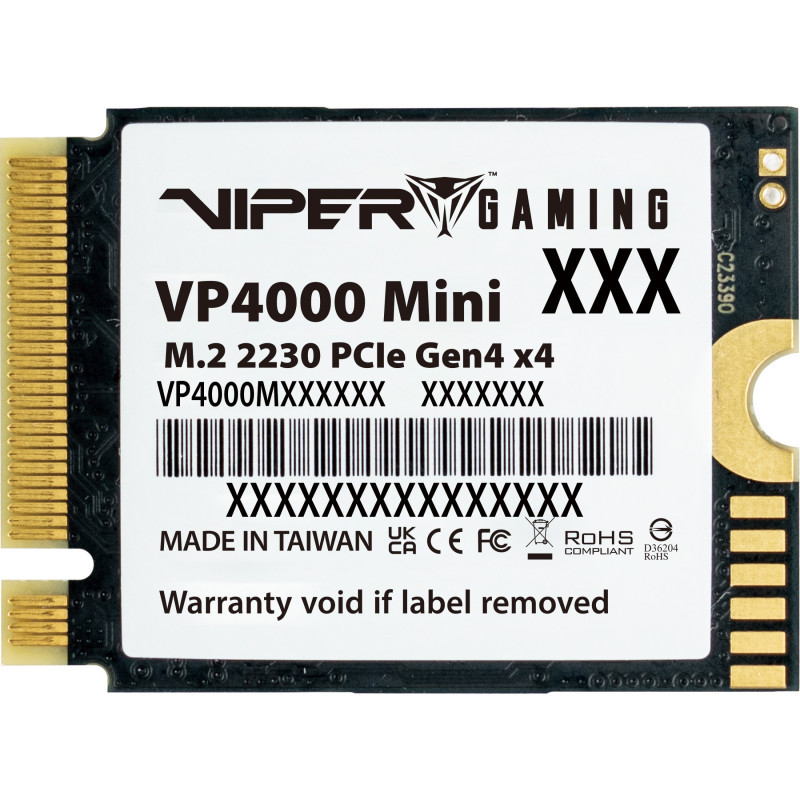 "Patriot Memory VP4000 Mini. SSD capacity: 2 TB, SSD form factor: M.2, Read speed: 5000 MB/s, Write speed: 3500 MB/s, Component for: Notebook/Game console"\n"Boost Your Gaming Confidence with SSD Power