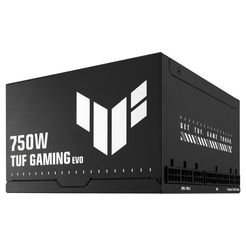 "ASUS TUF-GAMING-750B-EVO. Total power: 750 W, AC input voltage: 100 - 240 V, Power Factor Correction (PFC) type: Active. Motherboard power connector: 20+4 pin ATX, Motherboard power cable length: 50 cm, SATA power cable length: 400,120 mm. Purpose: PC, Power supply unit (PSU) form factor: ATX, 80 PLUS certification: 80 PLUS Bronze. Product colour: Black, Cooling type: Active, Number of fans: 1 fan(s). Cables included: CPU, PCIe, Peripheral (Molex), SATA"\n"Built For The Long Haul