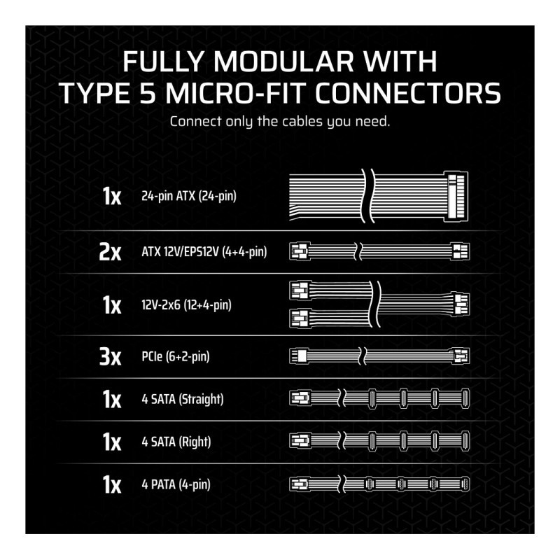 The ATX 3.1 standard demands a high level of reliability and power efficiency. While many CORSAIR PSUs meet these requirements, SF Series PSUs are formally certified for ATX 3.1 compliance.