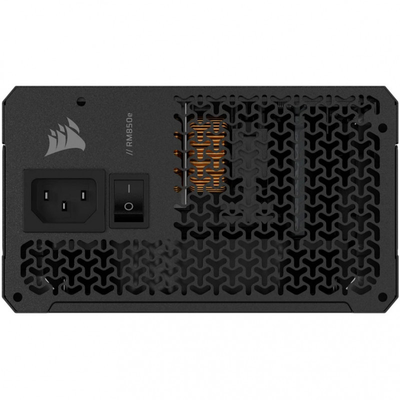 "Corsair RMe Series RM850e. Total power: 850 W, AC input voltage: 100 - 240 V, AC input frequency: 47 - 63 Hz. Motherboard power connector: 24-pin ATX, Cabling type: Fully-Modular. Purpose: PC, Power supply unit (PSU) form factor: ATX, 80 PLUS certification: 80 PLUS Gold. Product colour: Black, Cooling type: Active, Fan diameter: 12 cm. Compliance certificates: CE, RoHS, UKCA"\n"CORSAIR RMe Series Fully Modular Low-Noise Power Supplies include a dedicated 12V-2x6 GPU power cable, ATX 3.1 certification and PCIe 5.1 compliance, and Cybenetics™ Gold rated efficiency for a quiet, reliable build. The RMe PSUs' compact size also allow for easier cable management.