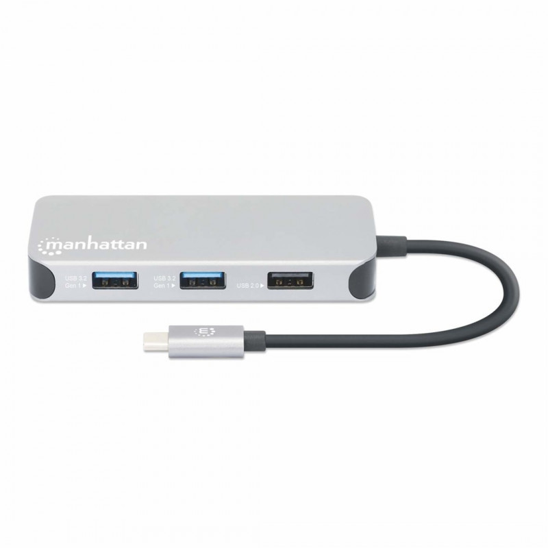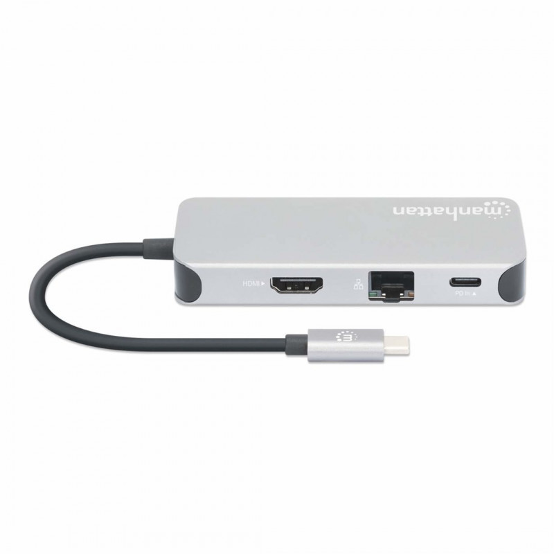 Manhattan 130615 knyginių kompiuterių dokas / jungčių replikatorius Vielinis USB 3.2 Gen 1 (3.1 Gen 1) Type-C Aliuminis