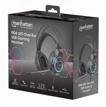 MANHATTAN RGB LED Over-Ear USB Gaming Headset, Wired, USB-A Plug, Microphone, Integrated Volume Control, 2.0m, Black, 180696