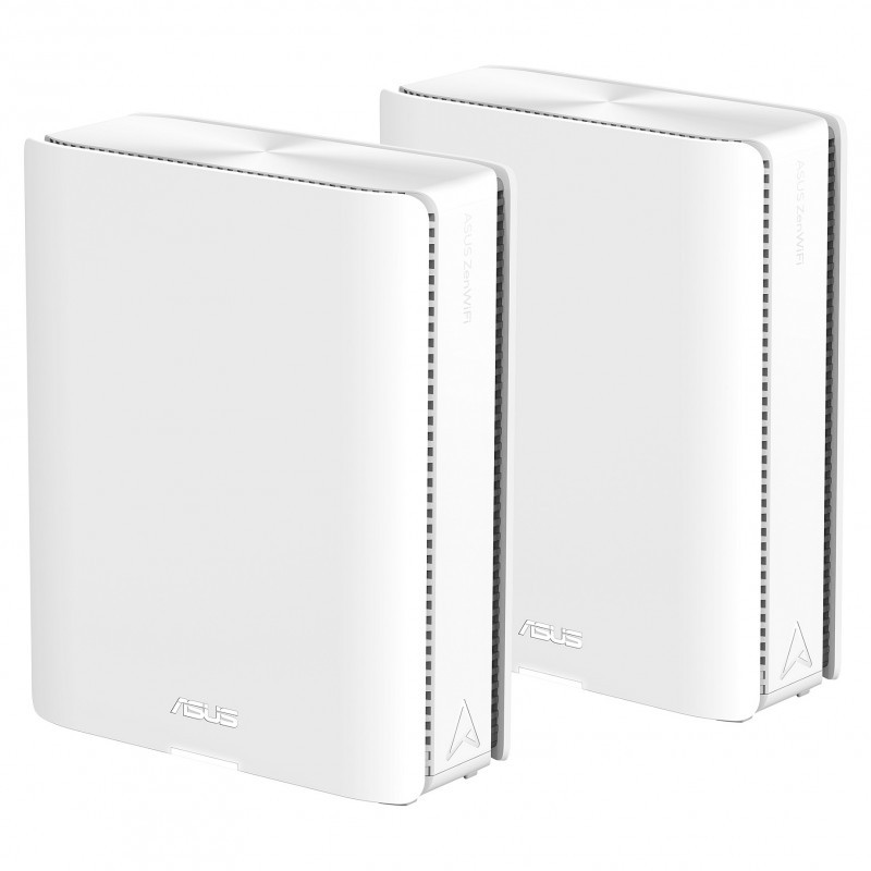 "ASUS ZenWiFi BQ16. Product colour: White, Antenna type: Internal, LED indicators: Power. Wi-Fi band: Tri-band (2.4 GHz / 5 GHz / 6 GHz), Top Wi-Fi standard: Wi-Fi 7 (802.11be), WLAN data transfer rate (max): 11529 Mbit/s. Internal memory: 2048 MB, Flash memory: 256 MB, Parental control features: Content filter, Time controls, Time rewards. AC input voltage: 110 - 240 V, AC input frequency: 50 - 60 Hz, AC adapter output voltage: 19 V. Width: 177 mm, Depth: 72 mm, Height: 218 mm"\n"BQ16 Quad Band WiFi 7 (802.11be) BE25000 Mesh WiFi System, support new 320MHz bandwidth & 4096-QAM, Multi-link operation (MLO),dual 10G ports, backup WAN, subscription free network security and AiMesh support