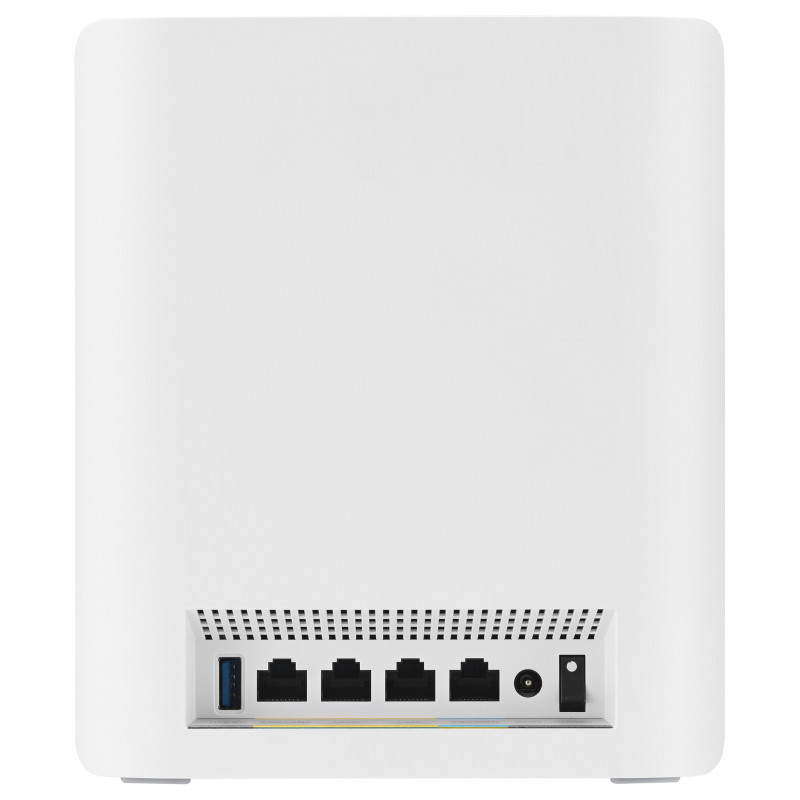 "ASUS ZenWiFi BT8. Product colour: White, Antenna type: Internal, Product type: Mesh router. Wi-Fi band: Tri-band (2.4 GHz / 5 GHz / 6 GHz), Top Wi-Fi standard: Wi-Fi 7 (802.11be), WLAN data transfer rate (max): 8643 Mbit/s. Internal memory: 1000 MB, Flash memory: 128 MB, Firewall security: Firewall. AC input voltage: 110 - 240 V, AC input frequency: 50 - 60 Hz, AC adapter output voltage: 12 V. Width: 159 mm, Depth: 72 mm, Height: 186 mm"\n"ASUS ZenWiFi BT8 Worry-Free Smart Home Mesh