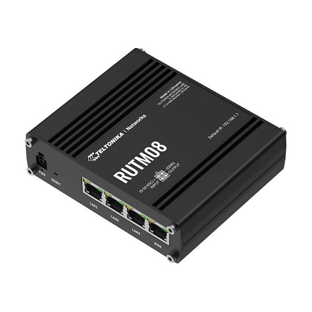 The RUTM08 is an industrial wired router designed for establishing reliable cable connections across a broad range of industrial applications. The router has four Gigabit RJ45 ports, which enable rapid network and data transmission between connected endpoints. The RUTM08 can support up to 128 tag/port-based VLANs for enhanced network flexibility as well as multiple VPNs and M2M communication protocols, which are particularly relevant in industrial environments.