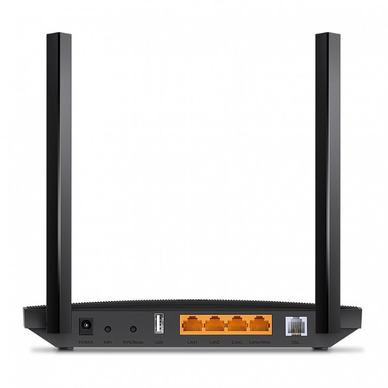 "TP-Link Archer AC1200 MU-MIMO VDSL/ADSL Wireless Modem Router, Black. WAN connection type: RJ-45. Wi-Fi band: Dual-band (2.4 GHz / 5 GHz), Top Wi-Fi standard: Wi-Fi 5 (802.11ac), WLAN data transfer rate (max): 867 Mbit/s. Ethernet LAN interface type: Gigabit Ethernet, Ethernet LAN data rates: 10,100,1000 Mbit/s, Cabling technology: 10/100/1000Base-T(X). Security algorithms: 64-bit WEP, 128-bit WEP, WPA, WPA-PSK, WPA2, WPA2-PSK. Product type: Tabletop router, Product colour: Black"\n"Archer VR400 to deliver impressive VDSL broadband speeds of up to 100 Mbps—nearly 4 x faster than ADSL2+. Archer VR400 serves as a DSL modem and wireless router, combining two devices in one. Experience superb wireless connections with 867 mbps (5 ghz) + 300 mbps (2.4 ghz) dual band wifi. Superior range two fixed omnidirectional antennas with beamforming technology provide stable wireless connections and optimal coverage. Versatile connectivity fully compatible with vdsl2/adsl2+/adsl2/adsl standards, as well as fiber, cable and 3g/4g internet services. Whole-home coverage with one meshtm – works alongside tp-link onemeshtm products to create a flexible mesh network. Mu-mimo technology simultaneously transfers data to multiple devices, reducing wait times. Full gigabit ports take full advantage of broadband speeds up to 1 gbps. Tether app– tp-link tether provides the easiest way to access and manage your router on your ios and android devices."