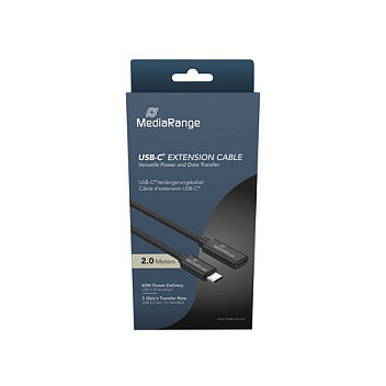 "MediaRange MRCS245. Cable length: 2 m. Connector 1: USB C, Connector 2: USB C, USB version: USB 3.2 Gen 1 (3.1 Gen 1), Maximum data transfer rate: 5 Gbit/s, Connector contacts plating: Gold, Product colour: Black"\n"Seamless Connectivity for Every Setup