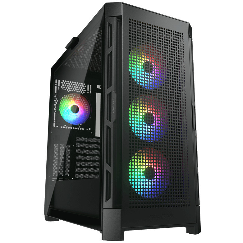 "COUGAR Midi Tower Case Duoface Pro ARGB, Black. Form factor: Midi Tower, Type: PC, Product colour: Black. Front fans installed: 3x 120 mm, Front fans diameters supported: 120,140 mm, Rear fans installed: 1x 120 mm. Supported HDD sizes: 2.5,3.5"". Width: 240 mm, Depth: 465 mm, Height: 496 mm. Package width: 313 mm, Package depth: 567 mm, Package height: 567 mm"\n"DUOFACE PRO RGB