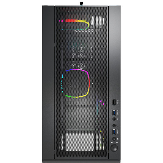 Thanks to the integrated front and side panel, users can see their whole interior at first sight.The fine mesh that covers from the underside of the front panel extends to the PSU chamber with pre-installed ARGB fans that enhances the beauty of this masterpiece.