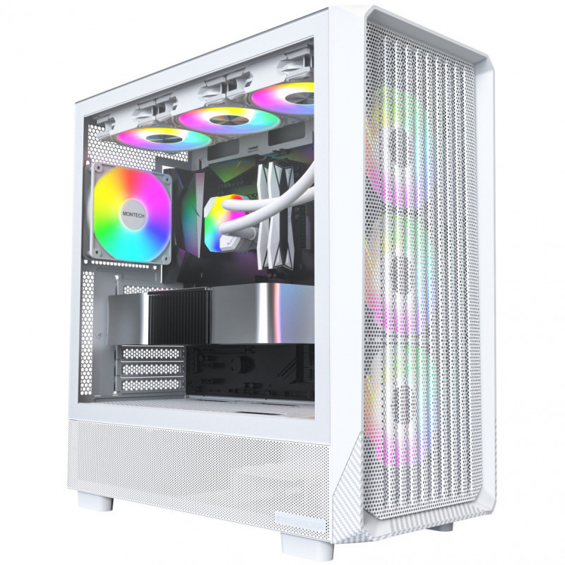 "Montech X5. Form factor: Midi Tower, Type: PC, Product colour: White. Supported power supply form factors: ATX. Front fans installed: 3x 140 mm, Front fans diameters supported: 120,140 mm, Rear fans installed: 1x 120 mm. Supported HDD sizes: 3.5"", SSD form factor: 2.5"". Width: 216 mm, Depth: 482 mm, Height: 496 mm"\n"Enhanced, Evolved, and Elevated