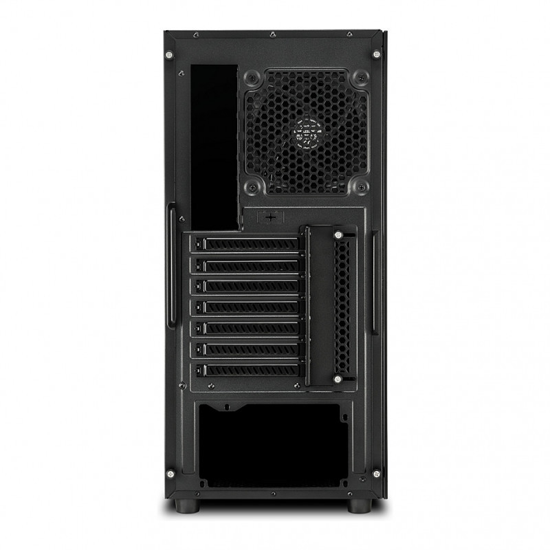"Sharkoon TG6 RGB. Form factor: Midi Tower, Type: PC, Product colour: Black. Power supply location: Bottom. Front fans installed: 3x 120 mm, Front fans diameters supported: 120 mm, Rear fans installed: 1x 120 mm. Supported HDD sizes: 2.5,3.5"". Width: 215 mm, Depth: 452 mm, Height: 465 mm"\n"For hardware that’s not meant to be hidden, we’ve designed and developed the TG6 RGB. This midi ATX case provides hardware with ample space and an exceptional platform for showcasing. The tempered glass front and side panels offer an almost completely unobstructed view of the inside workings of the case, while only the power supply, HDDs and cabling are kept out of sight. Each of the four pre-installed 120 mm addressable RGB fans are equipped with three rows of encircling LEDs. These provide stepless lighting effects within the entire RGB spectrum and optimally illuminate the installed hardware. Those who prefer water cooling will find ideal room for this and also a practical fan tray behind the front panel.
