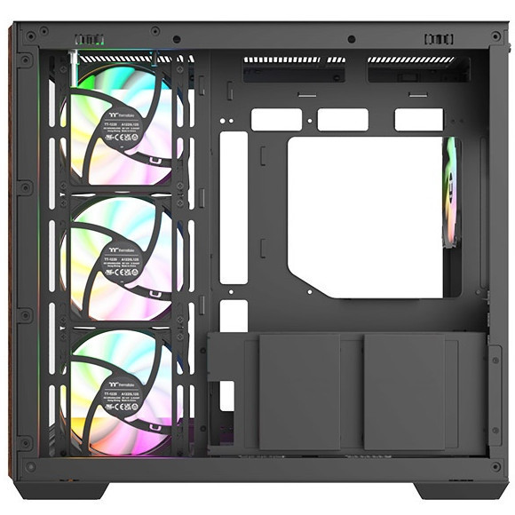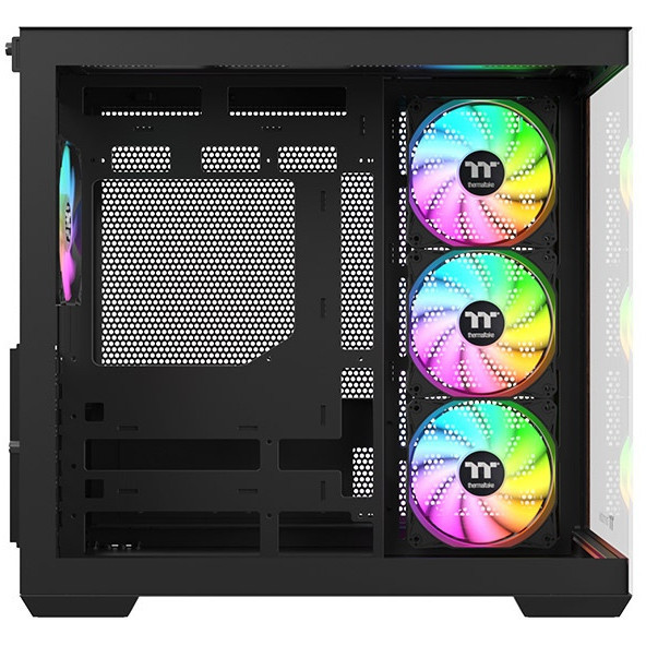 "Thermaltake View 380 WS ARGB. Form factor: Midi Tower, Type: PC, Product colour: Black. Power supply location: Side, Supported power supply form factors: PS2. Side fans installed: 3x 120 mm, Side fans diameters supported: 120,140 mm, Rear fans installed: 1x 120 mm. Supported HDD sizes: 2.5,3.5"". Width: 285 mm, Depth: 447 mm, Height: 411 mm"\n"View 380 WS ARGB Mid Tower Chassis