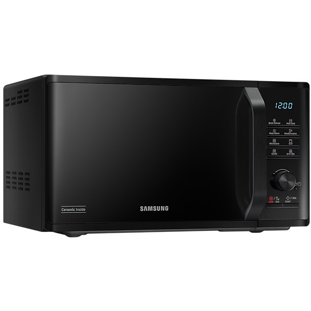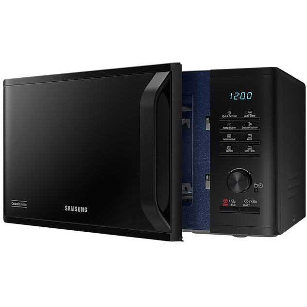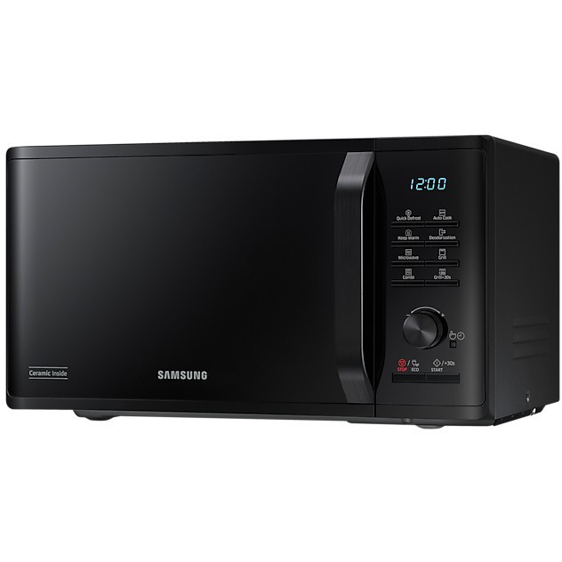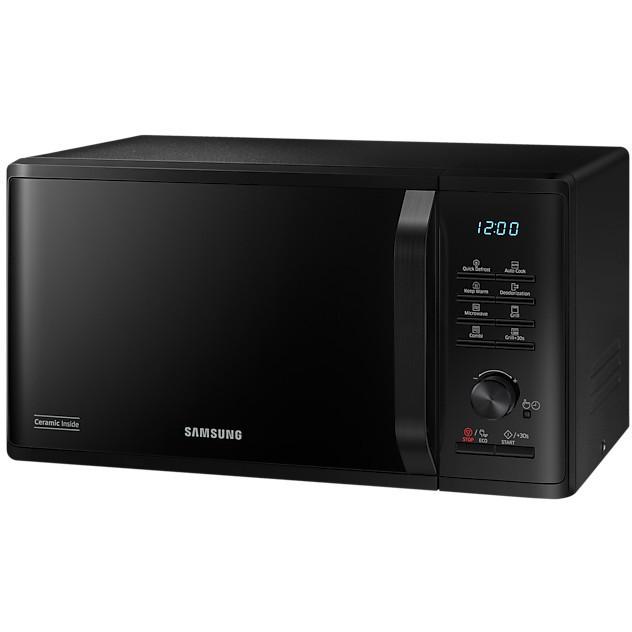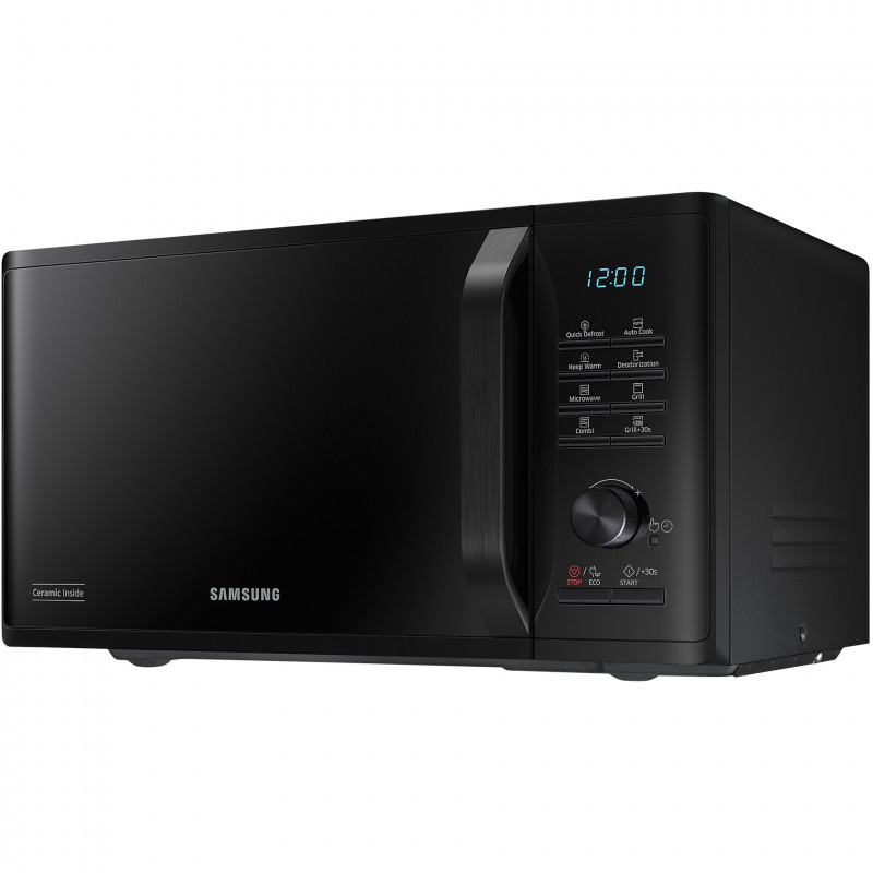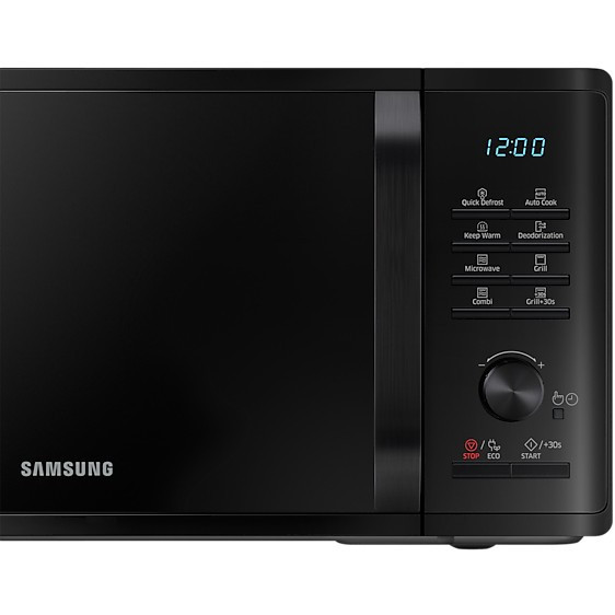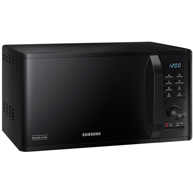"Samsung MG23B3515AK/EN. Appliance placement: Countertop, Product type: Grill microwave, Interior capacity: 23 L, Microwave power: 1250 W, Built-in display, Display type: LED, Control type: Buttons, Rotary, Product colour: Black"\n