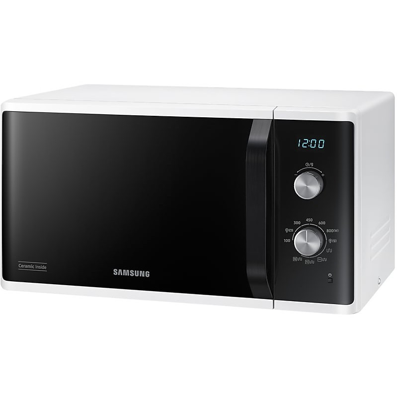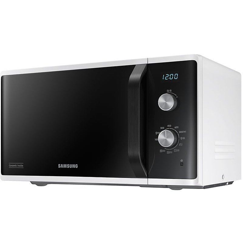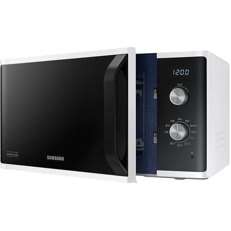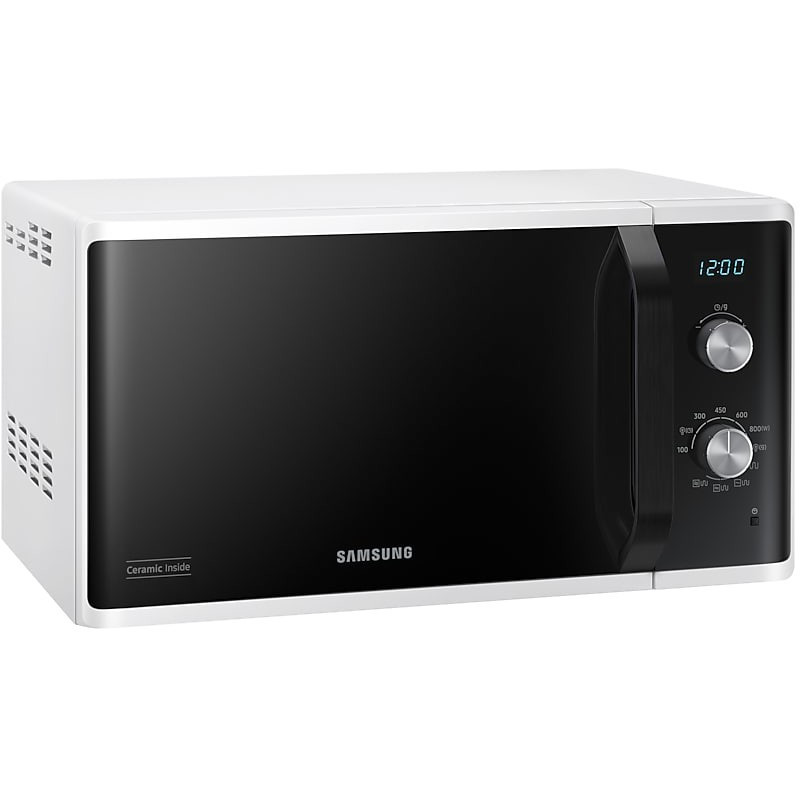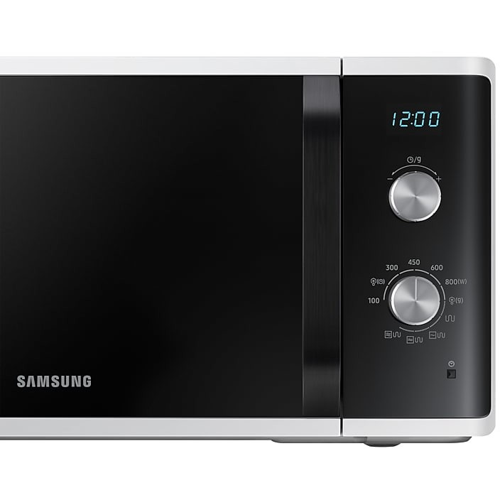 "Samsung MG23K3614AW/EG. Appliance placement: Countertop, Product type: Combination microwave, Interior capacity: 23 L, Microwave power: 800 W, Built-in display, Control type: Rotary, Product colour: White"\n