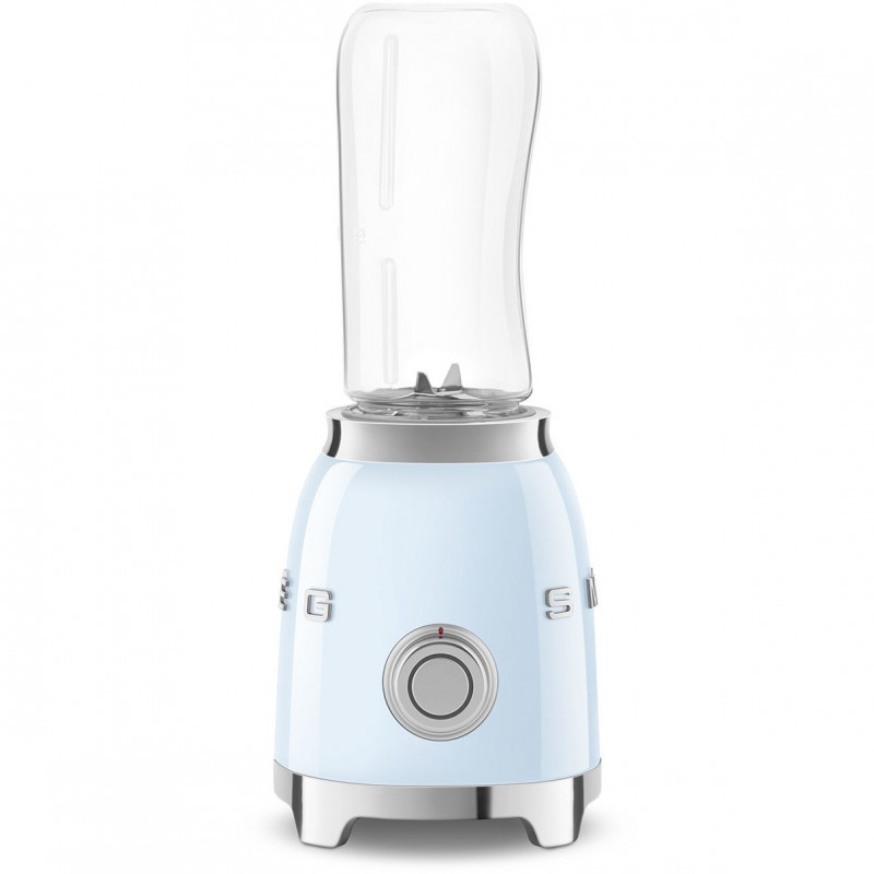 "Smeg 50's Style Blenders PBF01PBEU Pastel Blue. Type: Tabletop blender, Product colour: Blue, Colour name: Pastel blue. Bowl capacity: 0.6 L, Rotational speed (min): 20000 RPM, Rotational speed (max): 24000 RPM. Blending bowl material: Plastic, Housing material: Stainless steel. Power: 300 W, Power source: AC, AC input voltage: 220 - 240 V. Width: 142 mm, Depth: 136 mm, Height: 335 mm"\n"FILL UP ON VITAMINS