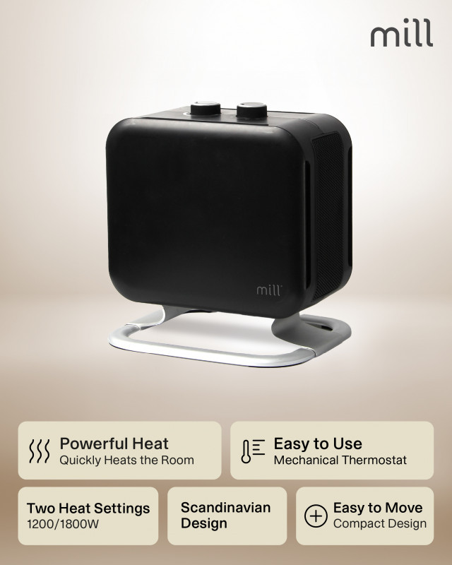 Mill | Heater | CUS1800MECBA | PTC Fan | 1800 W | Suitable for rooms up to 30 m² | Black