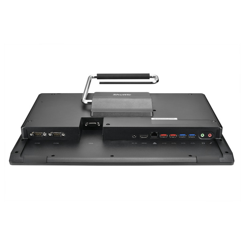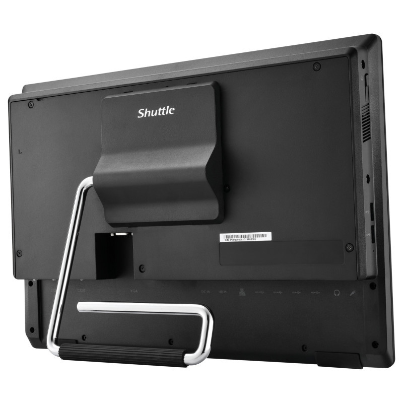 "Shuttle All-In-One Barebone P55U3, 15.6"" Multi-Touch-Screen, Intel Core i3-1315U, Wifi, IP54, fanless, 24/7 permanent operation. Chassis type: All-in-One, Product type: All-in-One PC barebone. Motherboard chipset: Intel SoC, Processor socket: LGA 1700, BIOS type: AMI EEPROM. Supported memory types: DDR5-SDRAM, Number of memory slots: 2, Maximum internal memory: 96 GB. Supported storage drive types: SSD, Storage drive interface: PCI Express. Ethernet LAN (RJ-45) ports: 1. Wi-Fi standards: 802.11a, 802.11b, 802.11g, Wi-Fi 4 (802.11n), Wi-Fi 5 (802.11ac), Bluetooth version: 4.2. Cooling type: Passive. Power supply: 90 W"\n"The Shuttle XPC all-in-one PC series P55U comes with a capacitive 15.6"" multi-touchscreen in Full-HD resolution and is powered by a Gen12/13 Intel ULV processor. The modern processor architecture has a very positive effect on power consumption and computing performance. The existing WLAN function can optionally be supplemented with a 4G/5G function with up to 4 antennas. Thanks to its passive heatpipe cooling, the system is virtually noiseless, maintenance-free and approved for 24/7 nonstop operation. Particularly suitable for vertical applications is the arrangement of connectors at the bottom and the IP54 compliant front panel which is dust-protected and protected from splashing of water.