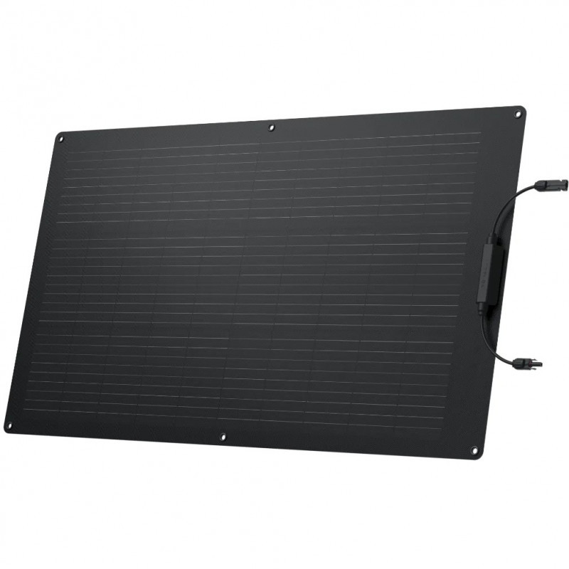 "EcoFlow ZMS330. Rated power: 100 W, Solar panel voltage: 20.3 V, Voltage at maximum power (Vmp): 17.1 V. Solar cell type: Monocrystalline silicon, Product colour: Black, International Protection (IP) code: IP68. Width: 1055 mm, Depth: 612 mm, Height: 25 mm"\n"Extremely Light - At only 2.3kg, this flexible solar panel is easy to move and install, barely adding any weight to your vehicle. Flexible solar panels suit roofs that can’t support the load of standard rigid panels, making them a more versatile option.