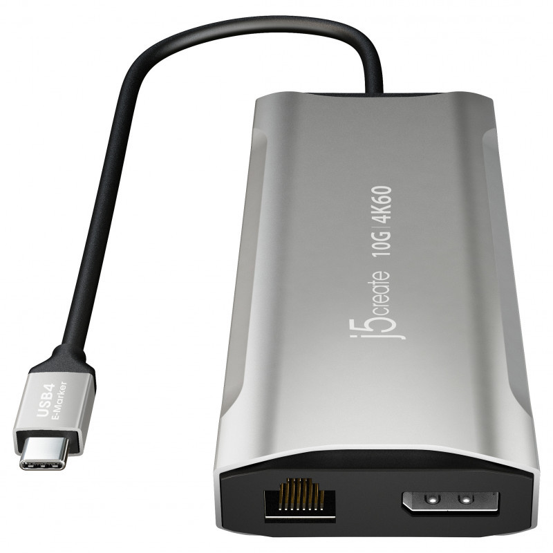 "j5create JCD397-N 4K60 Elite USB-C® Multi-Monitor Mini Dock. Connectivity technology: Wired, Host interface: USB 3.2 Gen 1 (3.1 Gen 1) Type-C, USB Power Delivery up to: 100 W. Ethernet LAN data rates: 10,100,1000 Mbit/s. Product colour: Grey, Colour name: Space Grey, Compatible memory cards: MicroSD (TransFlash), SD. Power source type: USB, Power connector: USB Type-C, Output voltage: 5 V. Width: 55 mm, Depth: 17 mm, Height: 148 mm"\n"Equipped with an advanced USB-C® E-Mark chip, this multi-monitor mini dock is compatible with USB4™ hosts and devices, featuring everything you need, from triple video outputs to 10Gbps USB™ ports, as well as 100W Power Delivery pass-through charging.