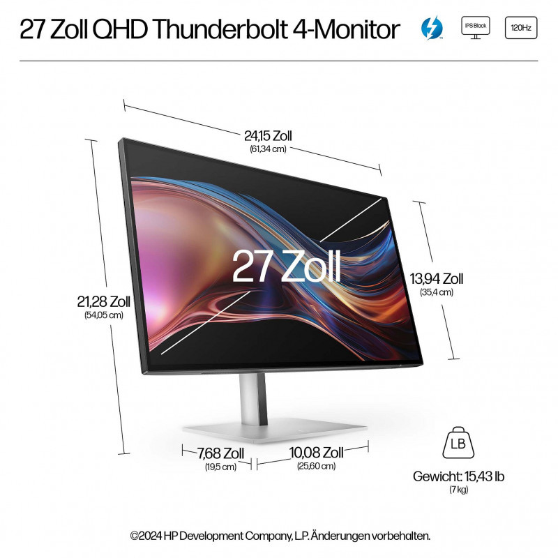 "HP Series 7 Pro 27 inch QHD Thunderbolt 4 Monitor - 727pu. Display diagonal: 68.6 cm (27""), Display resolution: 2560 x 1440 pixels, HD type: Quad HD, Display technology: LCD, Display surface: Matt, Response time: 5 ms, Native aspect ratio: 16:9, Viewing angle, horizontal: 178°, Viewing angle, vertical: 178°. Built-in USB hub, USB hub version: 3.2 Gen 2 (3.1 Gen 2). VESA mounting, Height adjustment. Product colour: Black"\n"Power to see ideas realized