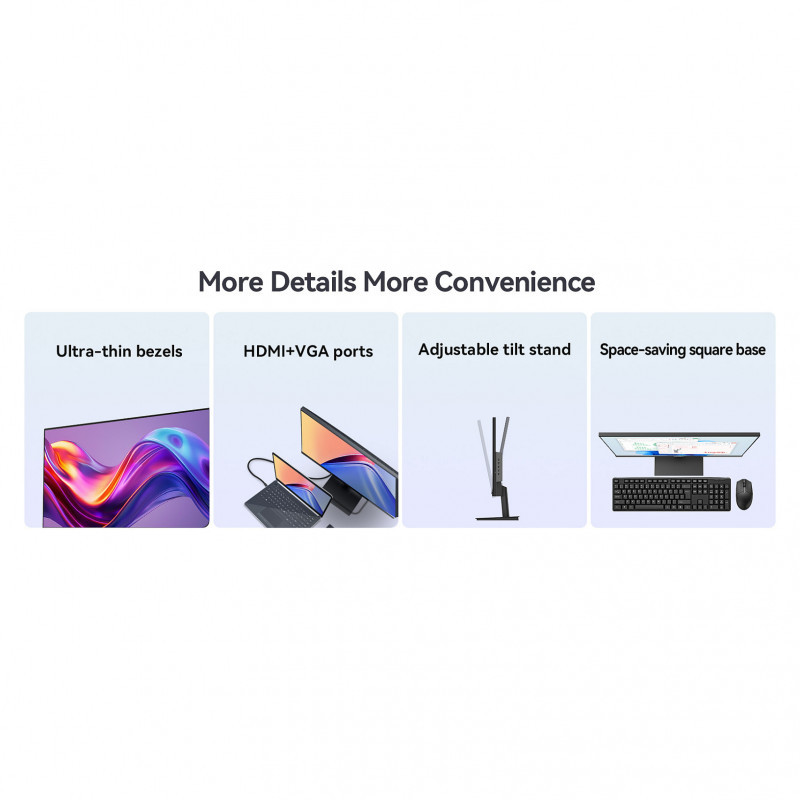 "Koorui E2411H. Display diagonal: 60.5 cm (23.8""), Display resolution: 1920 x 1080 pixels, HD type: Full HD, Response time: 6 ms, Native aspect ratio: 16:9, Viewing angle, horizontal: 178°, Viewing angle, vertical: 178°. VESA mounting. Product colour: Black"\n