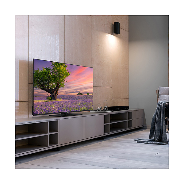This TV not only brings together smartness with high standards of picture and sound quality, it is also something for the eyes with its beautiful silver discreet frameless design: A perfect centrepiece for every living room.